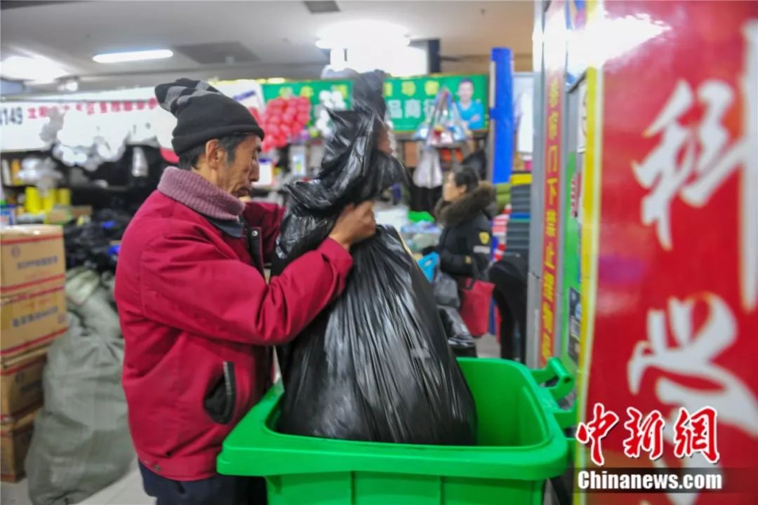 在沈陽街頭有這樣一位大爺,他身材矮小,一張黃瘦的臉上印著深深的皺紋,他時常穿一件半舊的工作服,清理著垃圾箱里的垃圾。