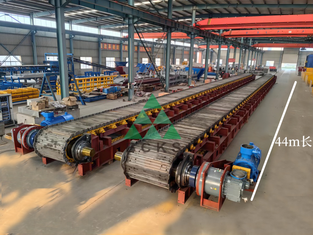 6、B1400x44m重型板式給料機(jī),輸送板寬度1400mm輸送長度達(dá)到44m,是我公司技術(shù)人員和生產(chǎn)部門打破常規(guī)思維、突破多項技術(shù)難題研制成功的運輸距離較長的設(shè)備。附44米長重板圖:1.jpg