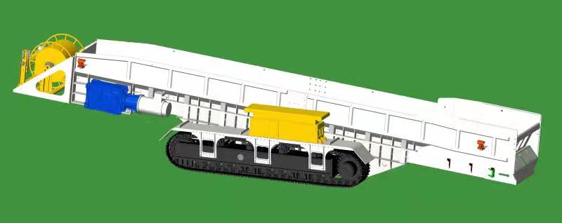 1、履帶式移動梭車采用全電動傳動,行走部分和刮板輸送機構(gòu)由整機配備的電控系統(tǒng)控制,履帶行走機構(gòu)和刮板輸送機構(gòu)采用大扭矩磁阻電機驅(qū)動,效率更高、更可靠環(huán)保。