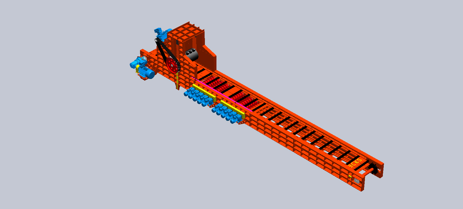 刮板中間段可加設(shè)格篩和滾軸篩,便于大塊物料充分破碎。